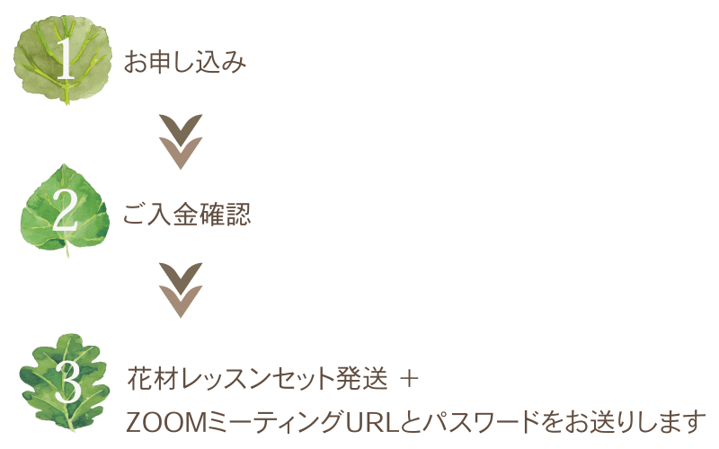 ご自宅にいながら気軽にオンラインで受講していただけるお花のレッスン。お手持ちのパソコンまたはスマートフォンでZOOMを利用しておこないます。予めZOOMのダウンロードをお願いいたします。