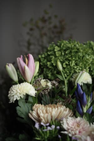 花束やアレンジメント、リースなどお客様のご要望とイメージをおうかがいしておつくりする、お花のオーダーメイド。